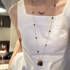 韩国博主同款虎眼石黑曜石包包项链钛钢叠戴颈链小众高级感秋冬女