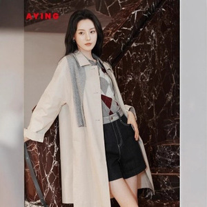 Y莹2025早秋新款女装 通勤宽松廓形中长款翻领风衣外套7302A