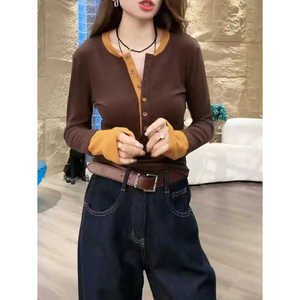 咖色【独特超好看上衣/爆款2024欧货小衫/早秋新款上衣女/小众不撞款上衣/长袖上衣女2024新款爆