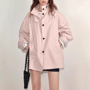 奶油蜜桃粉袖里撞格短款风衣外套女设计感小个子春新款