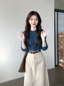 秋装多巴胺穿搭一整套微胖小个子过膝连衣裙子套装女款2025两件套