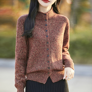 秋冬新款亲肤绒立领纯色花纱针织开衫外套加厚软糯毛衣女时尚外搭