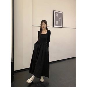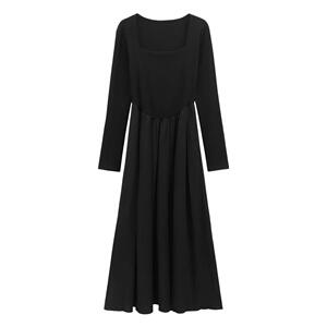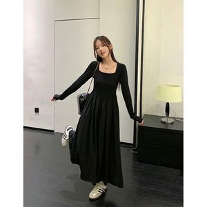 赫本黑色连衣裙女2025春季新款长袖收腰显瘦小黑裙感圆领长裙女装