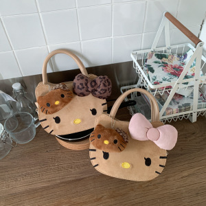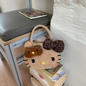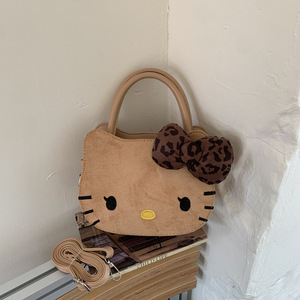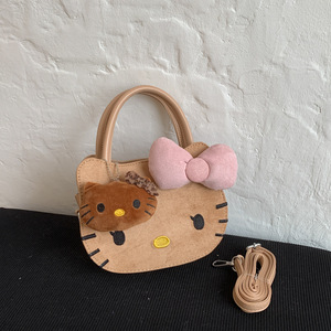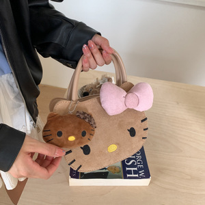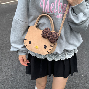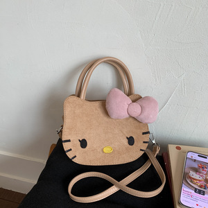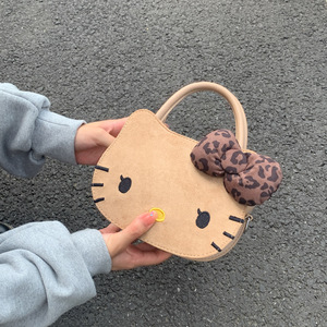 俏皮可爱高颜值黑皮kt手拎包包新款洋气秋季新款手提包绒面斜挎包
