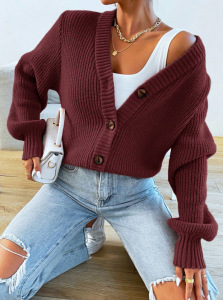 跨境外贸亚马逊热卖外穿开衫上衣针织毛衣女欧美风新款宽松v领