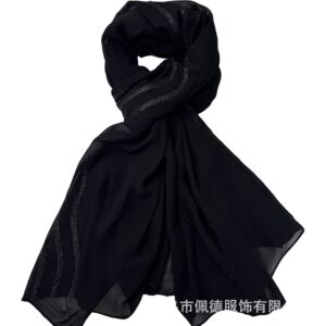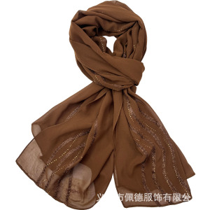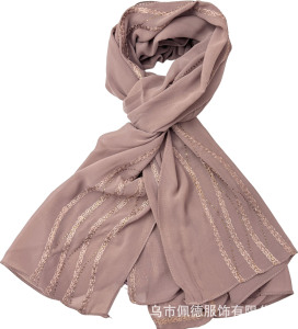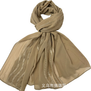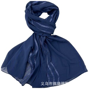 新款烫钻波浪形刺绣波浪线条刺绣围巾回族纱巾中东非洲头巾