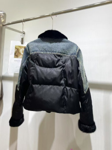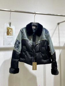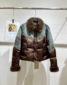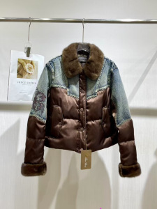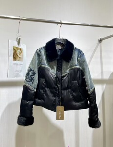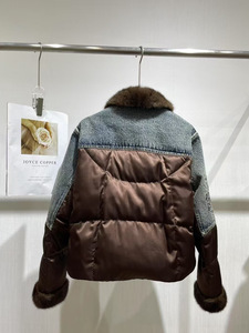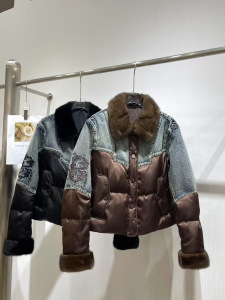 2025秋冬复古时尚百搭新款牛仔刺绣设计感拼接色羽绒服短款外套女