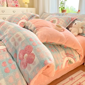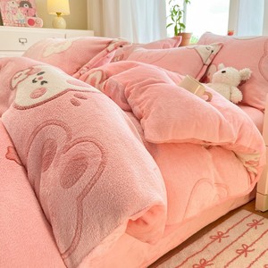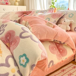 冬季加厚牛奶绒四件套保暖珊瑚绒被套南通加绒床上用品雪花绒床单