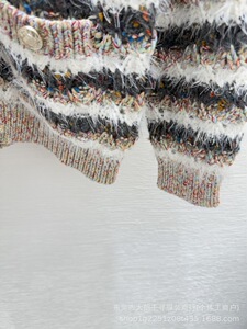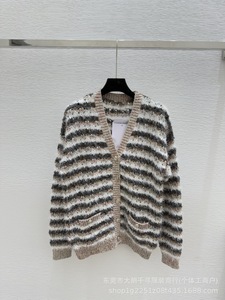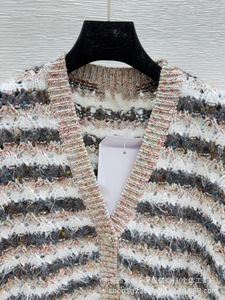 25早秋新款南油高定CH小香风时尚撞色条纹镂空V领针织开衫外套女