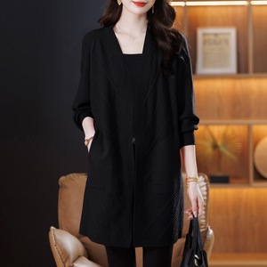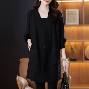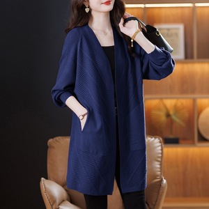初秋长款毛衣外套女2025新款春秋外搭宽松披肩大码胖妈妈针织开衫