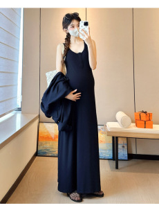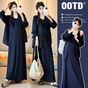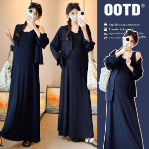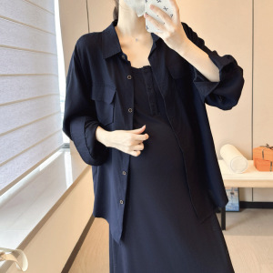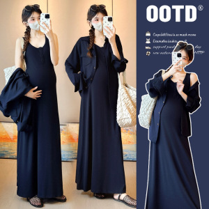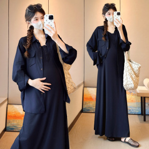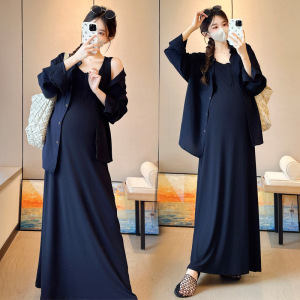 孕妇装春秋季时尚新款连衣裙子潮妈怀孕期大码简约休闲减龄两件套