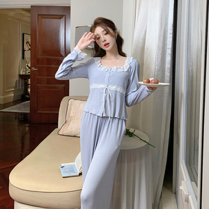 法式睡衣女胸垫新款棉质高级感长袖长裤甜美套装可外穿家居服