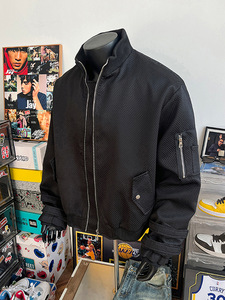 2025春秋季新款高街弯刀绑带蜂窝夹克男美式宽松潮流工装外套上衣