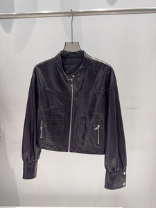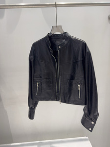 欧货真皮皮衣女2025秋冬新款绵羊皮油蜡皮夹克短款小个字酷飒外套