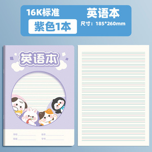 16k英语本小学生专用英语练习本加厚16k英文作业本励志封面四线三