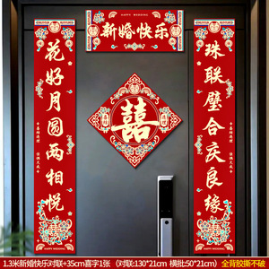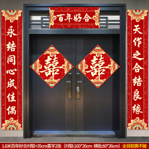 结婚对联男方农村大门米喜联全套婚礼女方出嫁入户门喜字贴装饰