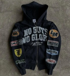 2024欧美时尚卫衣开衫印花宽松街头潮流连帽上衣卫衣