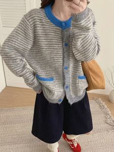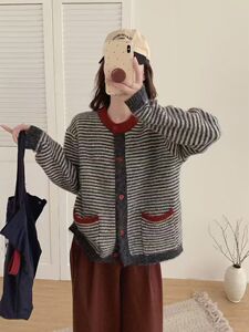 韩系撞色条纹针织衫2025开衫秋冬新款爆款减龄多巴胺软糯毛衣上衣