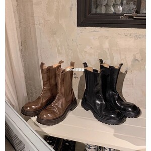 【葡萄妈】女团靴~水洗马纹褶皱厚底切尔西弹力马丁短靴女烟筒靴