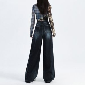 批发冬季美式复古阔腿直筒牛仔裤女慵懒宽松拖地裤代发