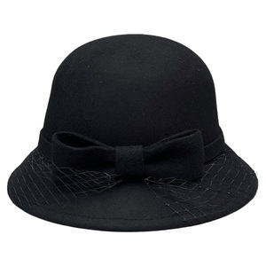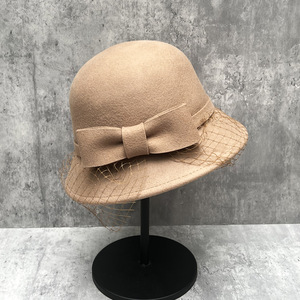 酒红色 网纱宽毡条蝴蝶结盆帽