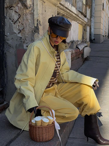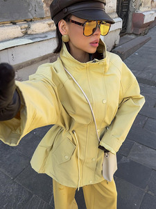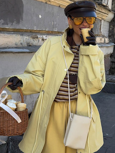 宽松小个子工装风衣立领长袖防风收腰抽绳外套2025跨境欧美风新款