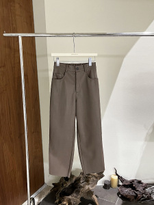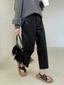 初打十三行2025秋冬新款简约高腰休闲裤显瘦直筒PU皮裤女KA571