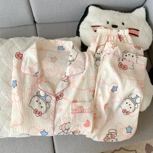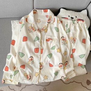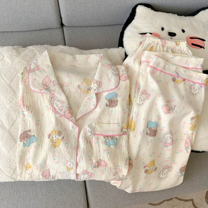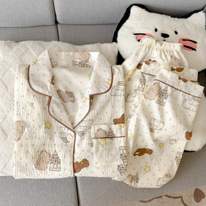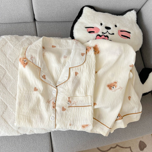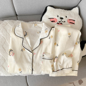 源头工厂春秋季长袖长裤睡衣女云朵棉韩版卡通甜美ins风开衫套装