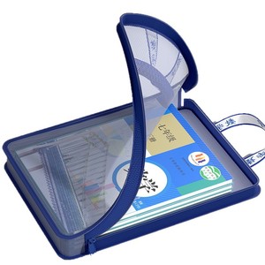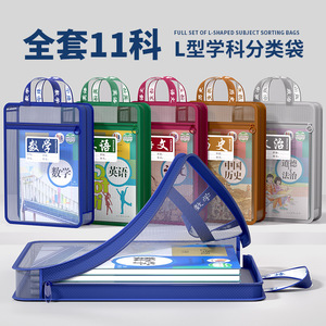 L型科目分类袋透明文件收纳袋多层拉链式网纱大开口小学生拎书袋