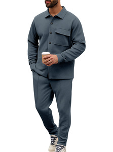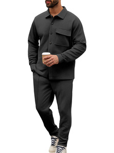 欧美跨境亚马逊秋冬季休闲男翻领长袖上衣开衫单排扣纯色修身夹克