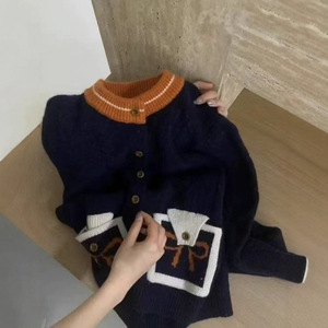 韩国2025秋冬新款软糯甜美针织开衫女时尚休闲撞色双口袋毛衣外套