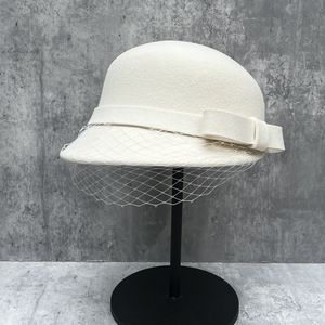 奶白色 网纱宽条羊毛蝴蝶结马术