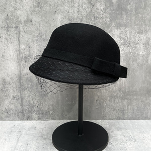 黑色纯羊毛呢骑士帽子女2025款秋冬蝴蝶结小香风礼帽显脸小马术帽