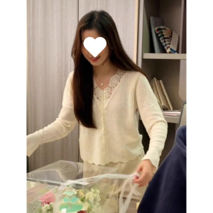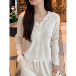 法式V领高级花边蕾丝打底衫女秋冬2025新款小香风设计感长袖上衣