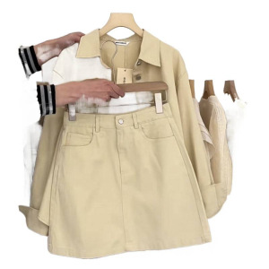 春秋温柔系穿搭女2025新款韩版百搭吊带宽松外套显瘦半身裙两件套