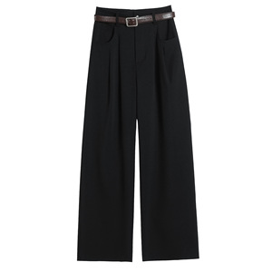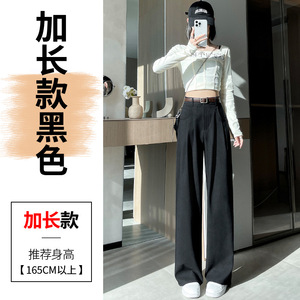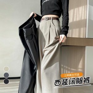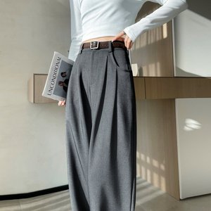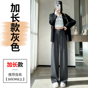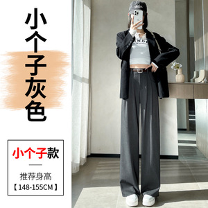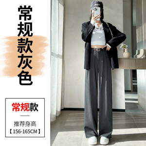拉夏贝尔灰色窄版阔腿裤女秋季2025新款高腰小个子垂感西装直筒裤