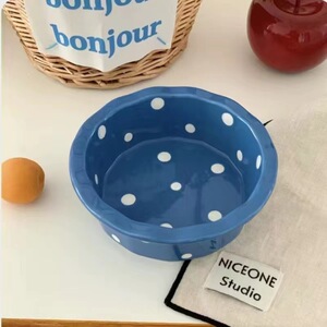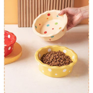 英寸花边宠物食碗狗狗猫咪波点陶瓷碗实用水碗工厂厂家跨境直销