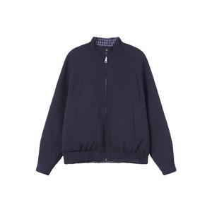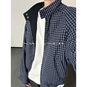 春秋新款美式复古正反双面穿纯色格子外套男女夹克上衣ins藏蓝色