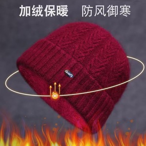 秋冬天新款妈妈帽老太太保暖毛线帽加绒加厚骑车护耳中老年针织帽