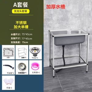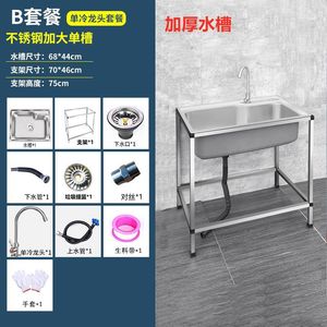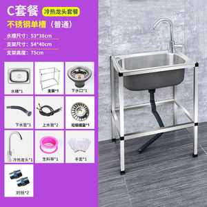 厨房家用304不锈钢水槽单槽带支架洗菜盆洗碗槽大号单盆洗手池