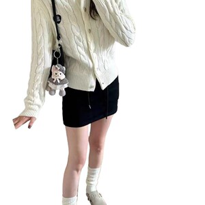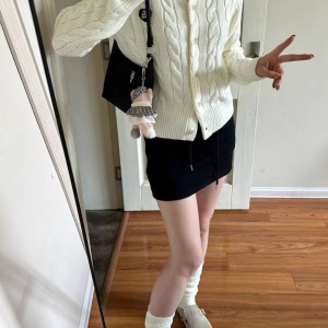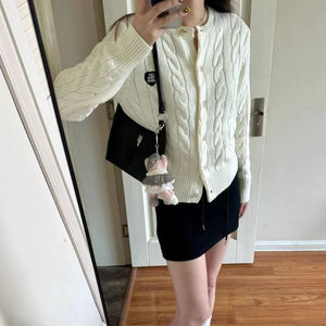 奶油香草籽毛衣女早秋新品外套长袖白色麻花针织开衫短款上衣