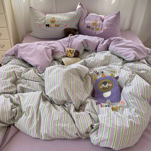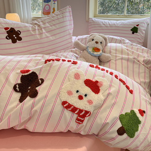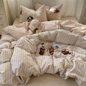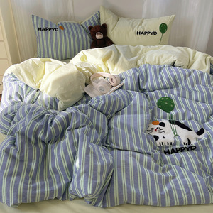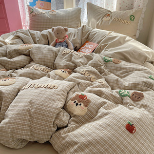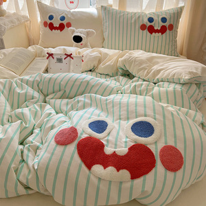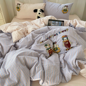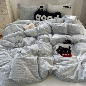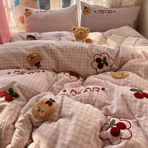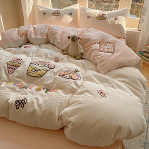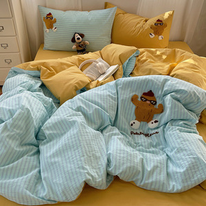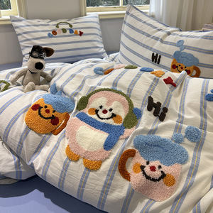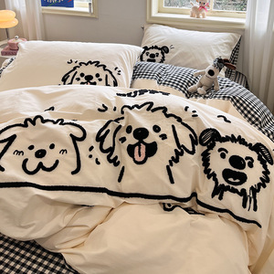 可爱狗狗纯棉水洗棉床上四件套全棉ins男孩毛巾绣被套床单三件套4
