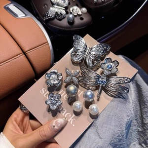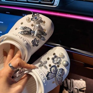 银秘花园洞洞鞋高级可拆卸银色金属蝴蝶蜻蜓系列鞋花diy装饰鞋扣