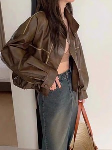 爆款2025春秋新款港风复古PU衣外套女设计感下摆抽绳通勤皮衣夹克
