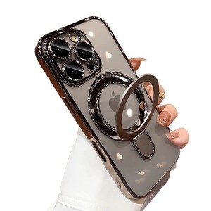 适用苹果17promax手机壳电镀磁吸支架iPhone16全包镜头膜透明软套