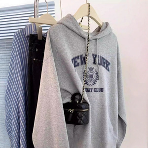 韩系复古字母印花连帽套头卫衣女秋季新款设计感宽松休闲百搭上衣