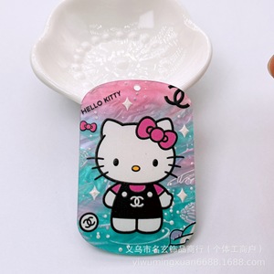 亚克力双面浮雕印花HelloKitty大牌联名款吊孔散珠包挂钥匙扣配件