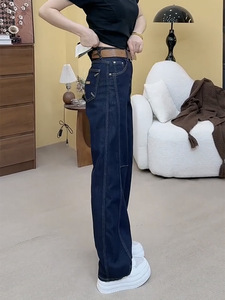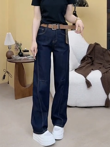 2025早秋新款牛仔裤女大码弹力显瘦窄版直筒拖地裤遮肉减龄阔腿裤