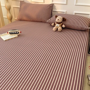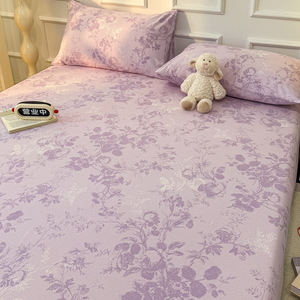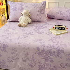 A类紫色加厚纯棉磨毛床单单件100单人被单1.5米床笠罩三件套