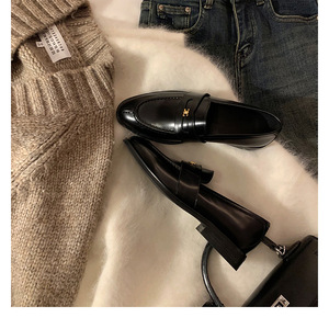 全牛皮复古小金扣真皮懒人乐福鞋女圆头平底单鞋一脚蹬英伦小皮鞋
